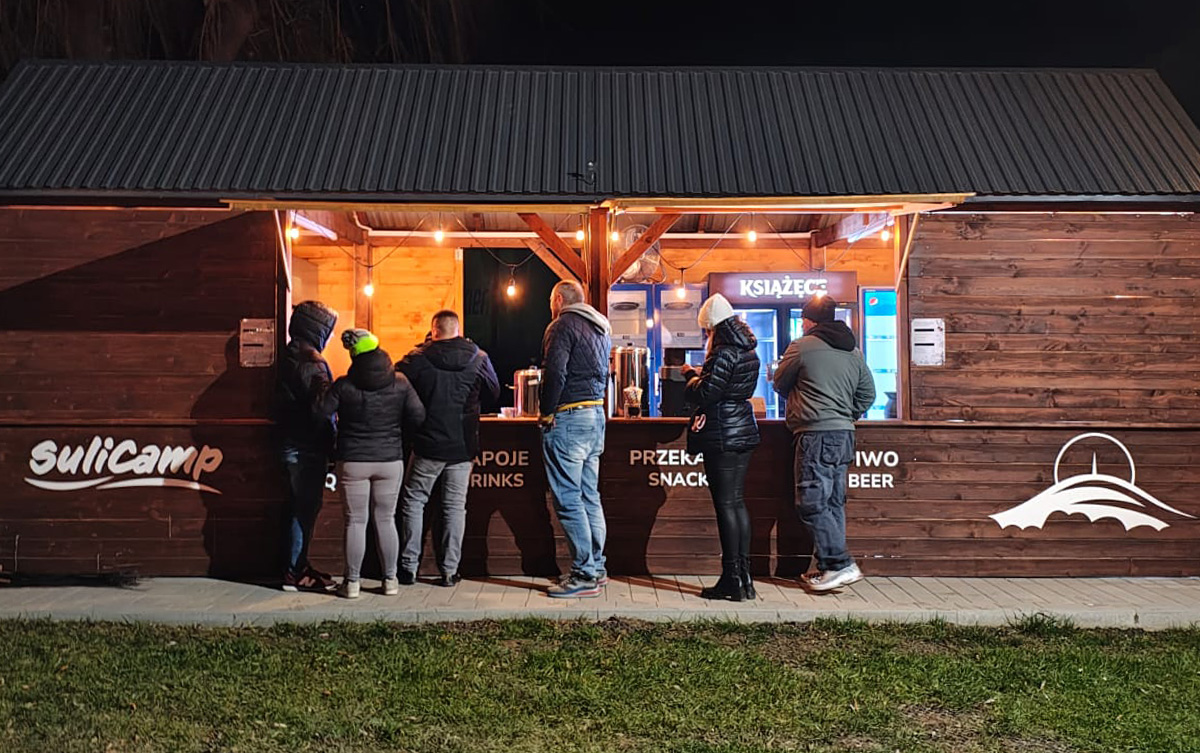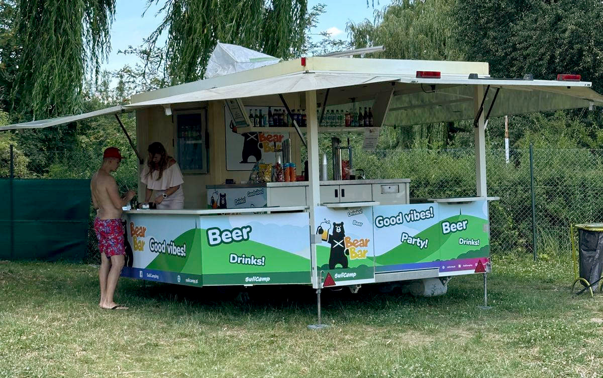 W sezonie działa u nas także Beer Bar, czyli przyczepa z piwem i napojami, która pojawia się jako mobilny punkt gastronomiczny podczas eventów oraz w najbardziej upalne weekendy. To jeszcze więcej wygody, gdy na plaży dzieje się dużo i liczy się szybkie, chłodne orzeźwienie bez zbędnego czekania.